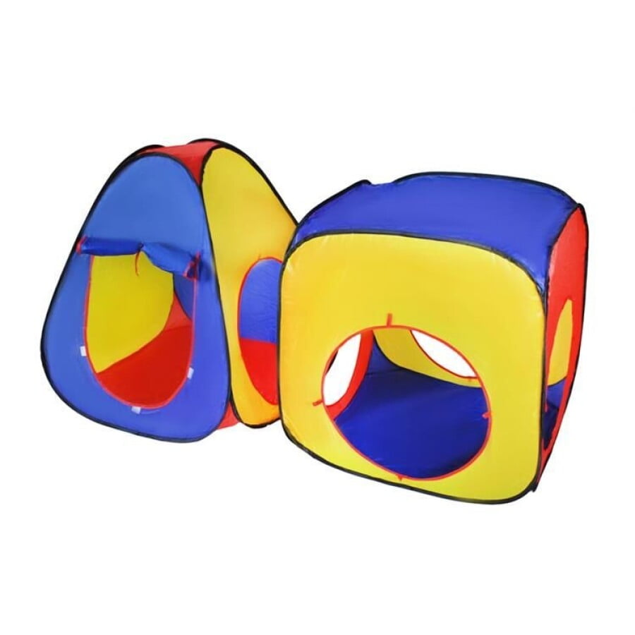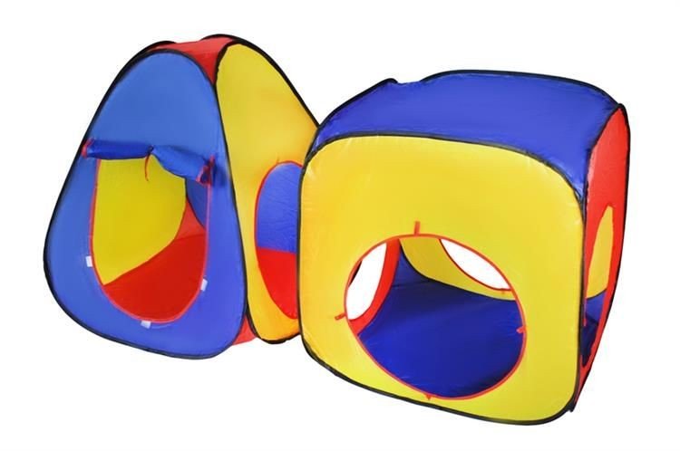 Doua corturi combinate cu un tunel elastic vor face fiecare explorator mic fericit. Cortul în forma de con are o intrare din fata si o legatura cu celalalt spatiu, care are trei iesiri separate. Toate aceste caracteristici de 3 in 1 ofera multe optiuni de joaca. Le puteti combina dupa cum preferati si crea uimitoare labirinturi!